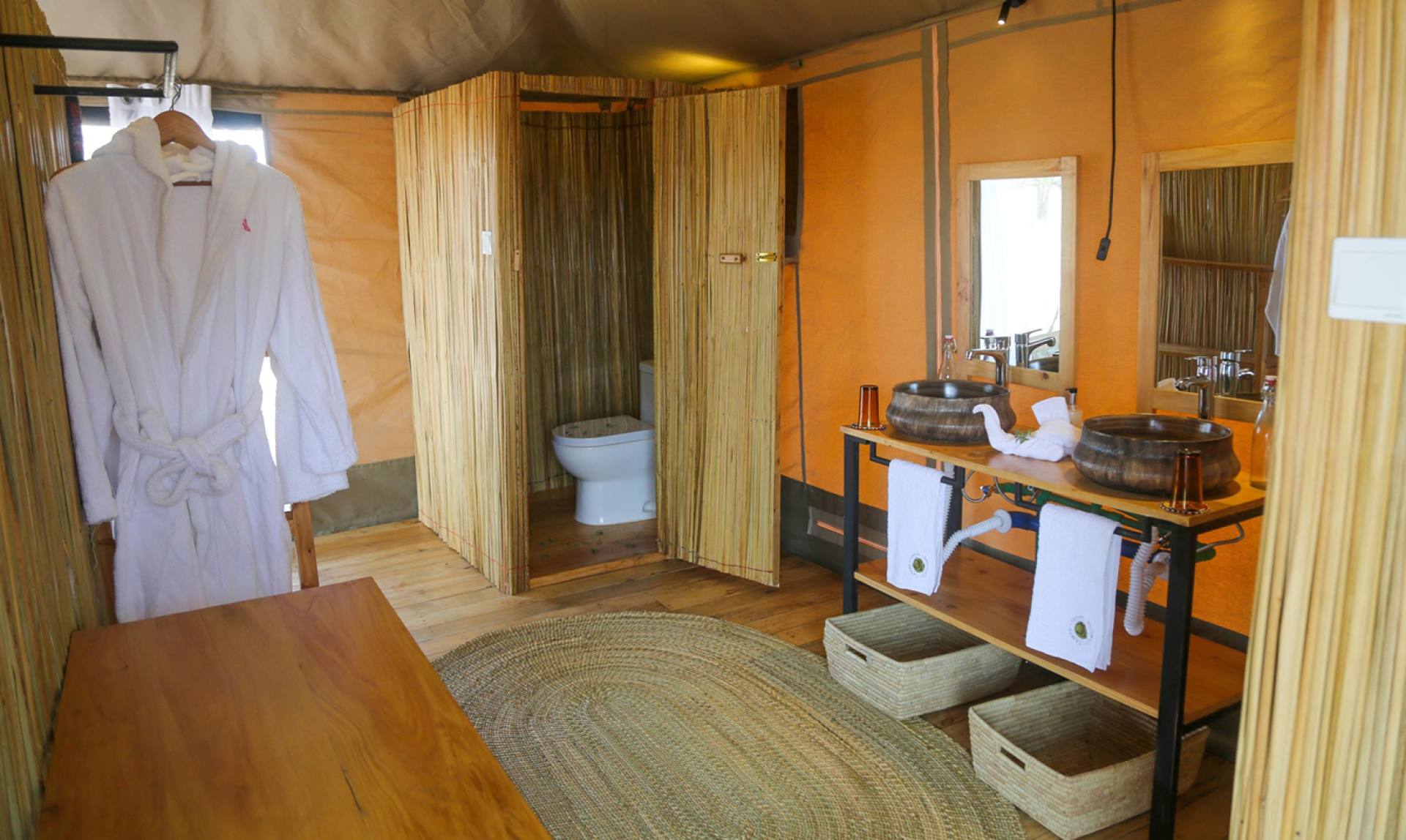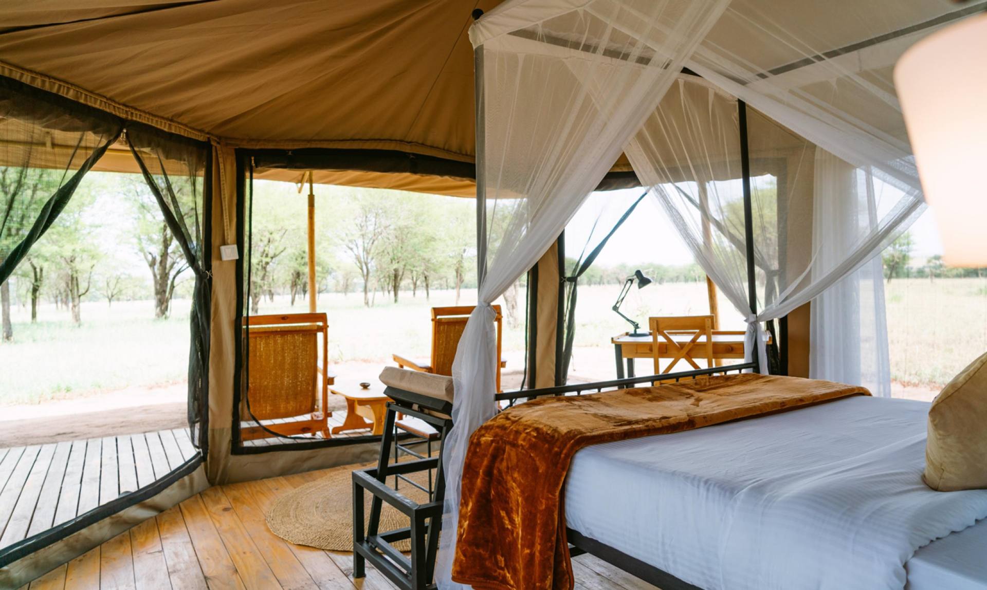 Intimate Camp Seronera is a permanent luxury tented camp located in the central area of the world-famous Serengeti National Park. The camp consists of eleven tents, including two-bedroom family tents. Each tent has a veranda, a sleeping area, a changing area, and a bathroom with a shower and toilet. For added convenience, each tent is equipped with electricity for lighting and charging your cell phones, cameras, tablets, laptops, or other electronic devices. The common area includes both a lounge tent and a dining tent. The lounge tent is furnished with comfortable sofas and armchairs and features a selection of books, board games, a desk, and wireless internet. The dining tent allows for individual or group dining and houses a well-stocked bar.