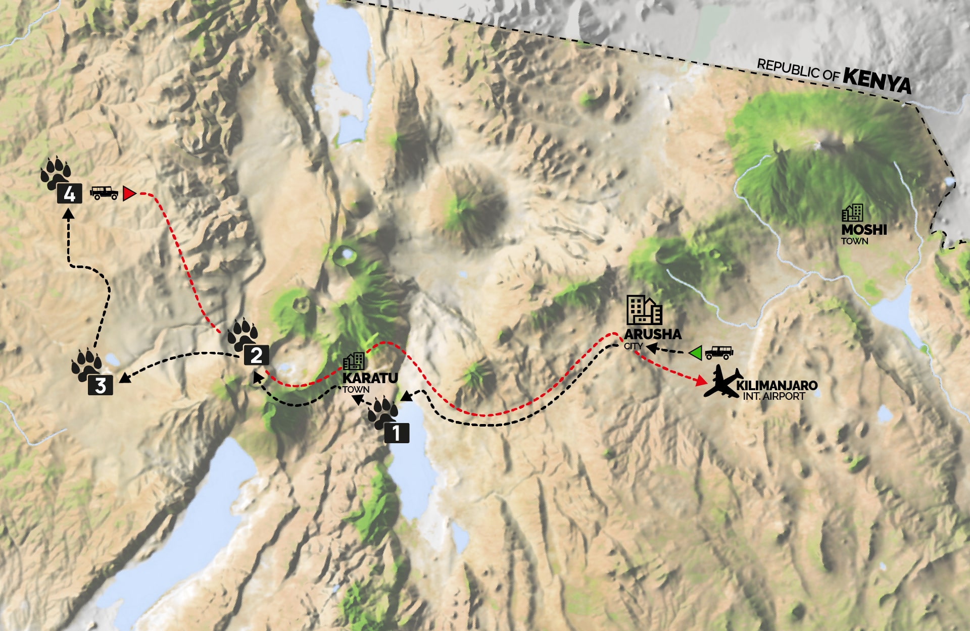 (Tempo indicativo transfer Serengeti•Arusha: 6 h • Serengeti•Aeroporto del Kilimangiaro: 7 h)