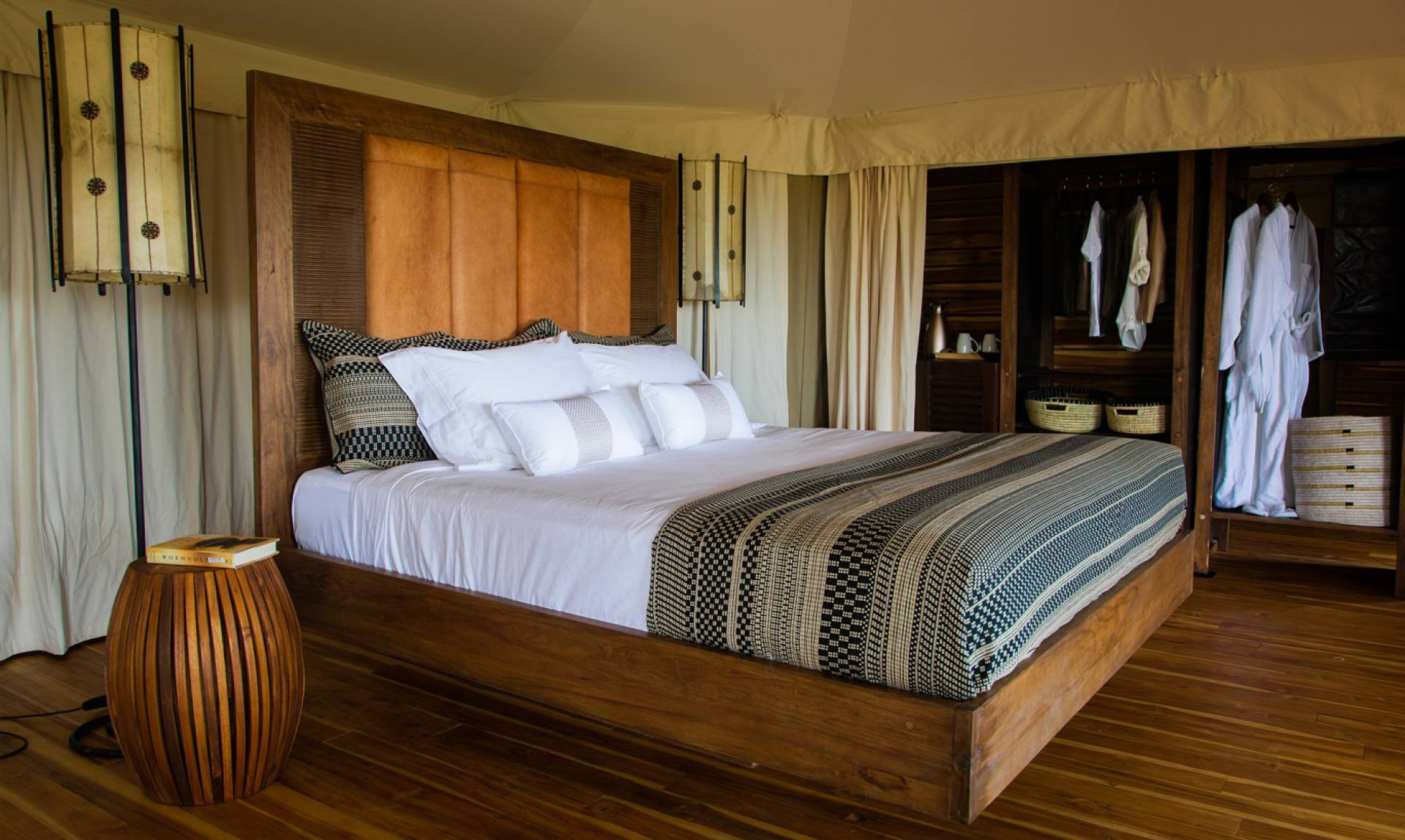 Cherero Camp offre una piccola oasi di paradiso in mezzo alla natura selvaggia. Ogni elegante suite, arredata con mobili di design realizzati da artigiani locali, dispone di una spaziosa camera da letto, un salotto e un bagno privato.
