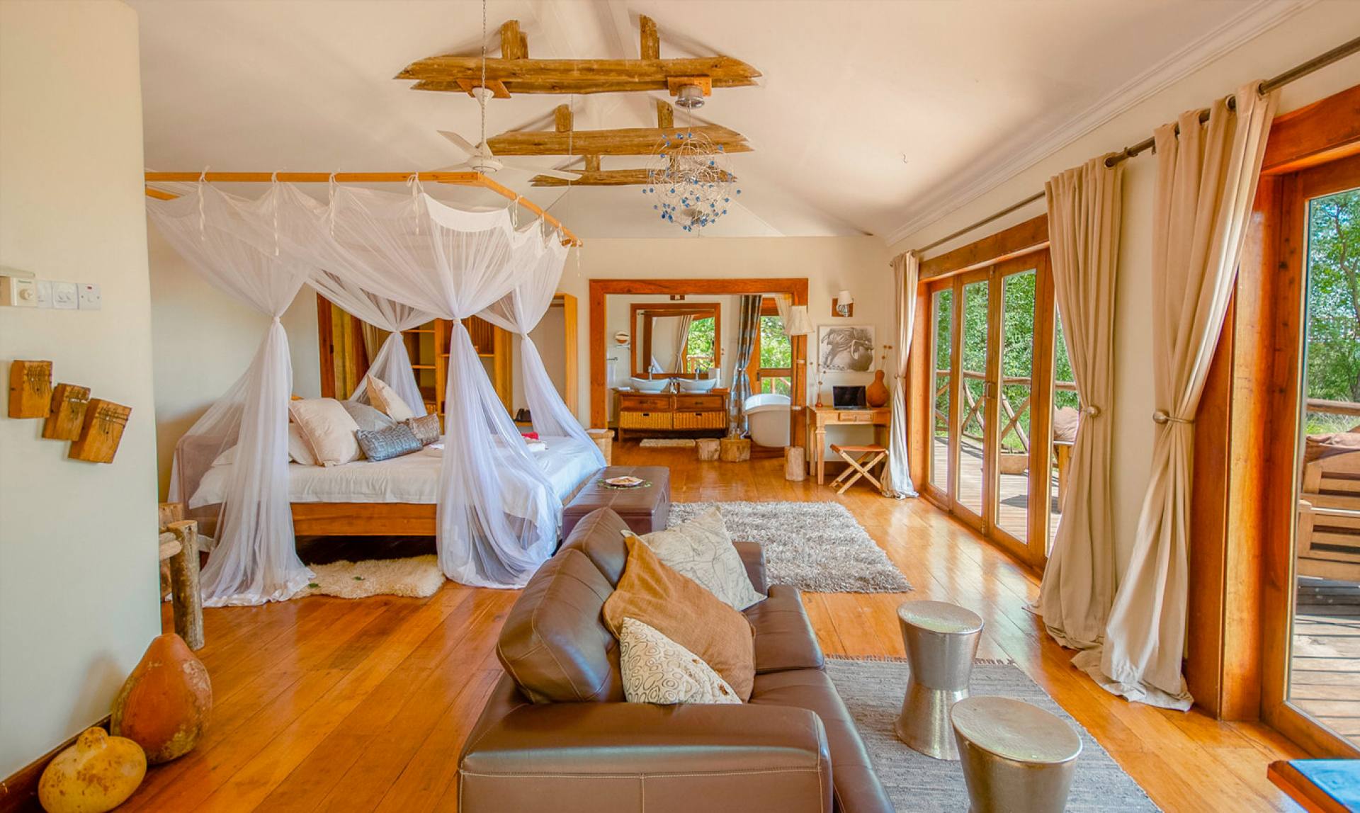 Escarpment Luxury Lodge Manyara si trova in cima alla scarpata della Great Rift Valley, a soli dieci minuti di auto dalla pista di atterraggio di Manyara. Il lodge dispone di sedici chalet lussuosamente arredati che riflettono l’atmosfera dell’artigianato locale con pavimenti in legno duro, manufatti splendidamente realizzati a mano e pregiati oggetti d’antiquariato. Ogni chalet ha il suo terrazzo privato per ammirare la magnifica vista del Lago Manyara e della fauna selvatica, offrendo il senso di una completa immersione nella natura.