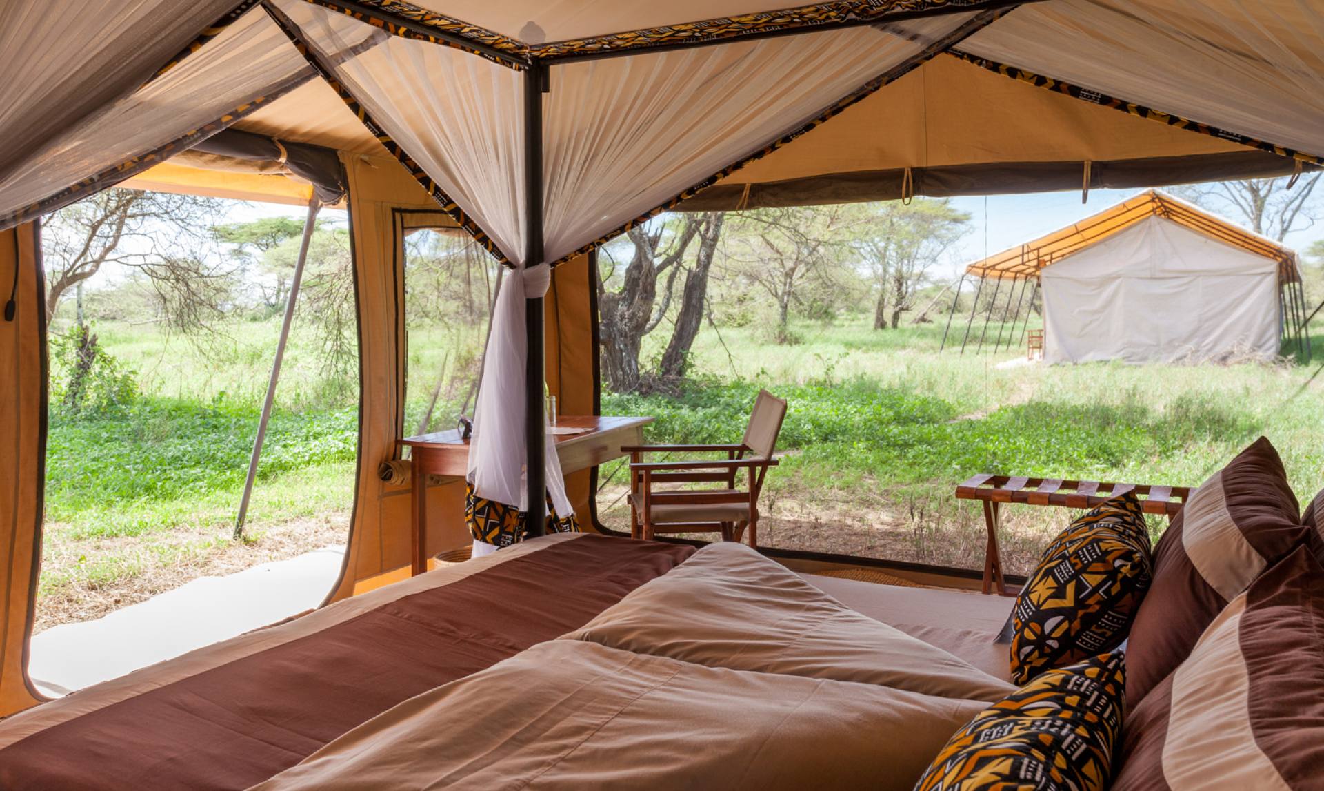 Gnu Mara River Camp è un campo tendato mobile di lusso che si sposta due volte l’anno per seguire la Grande Migrazione di gnu e zebre attraverso il Serengeti. Da giugno a ottobre, si trova nella zona di Kogatende, nel Serengeti settentrionale, dove è possibile osservare la fauna selvatica durante la stagione dell’attraversamento del fiume Mara da parte di milioni di erbivori. Dispone di otto tende, tutte dotate di bagno privato, wc e altri servizi essenziali. Il campeggio è completamente illuminato da energia solare, il che lo rende il più ecologico possibile.