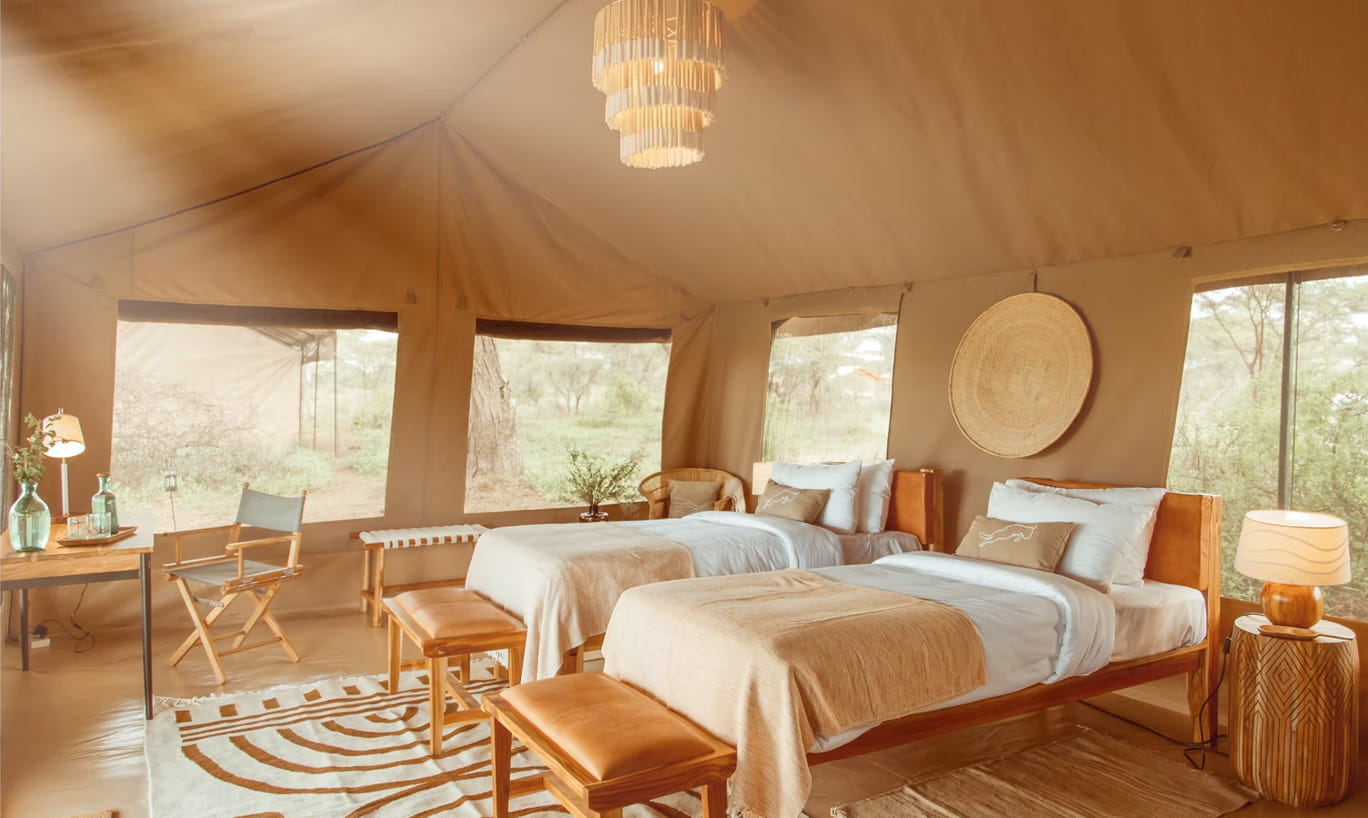 In the Wind è un campo mobile di lusso strategicamente posizionato in due aree chiave per seguire la Grande Migrazione: Ndutu e il Serengeti Settentrionale. Queste location privilegiate sono state scelte per permettere di assistere in prima fila a due degli eventi naturali più suggestivi: la stagione dei parti da dicembre a marzo e la maestosa traversata del fiume Mara da giugno a ottobre. Il campo dispone di sei tende per gli ospiti che possono essere configurate come doppie, singole o triple, più una tenda familiare. Ogni spaziosa tenda dispone di veranda privata con vista mozzafiato sul paesaggio circostante, comodo salotto, ampia camera da letto e bagno privato con doppio lavabo e doccia interna ed esterna. Il ristorante offre una cucina eccellente con un menù fusion locale e internazionale.