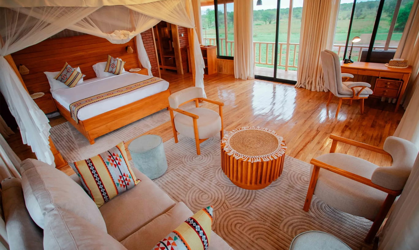 Into Wild Africa Luxury Safari Lodge offre una delle migliori posizioni per osservare la fauna selvatica tutto l’anno. Le eleganti camere combinano un’autentica atmosfera safari con tutti i comfort moderni di casa. Ogni villa è dotata di lussuosi letti king-size, ampia zona soggiorno, patio esterno e bagno privato con wc, doppi lavandini e doccia. Dopo un’intensa giornata di safari è possibile rilassarsi al bar e nella ampia lounge prima di gustare un’ottima cena.