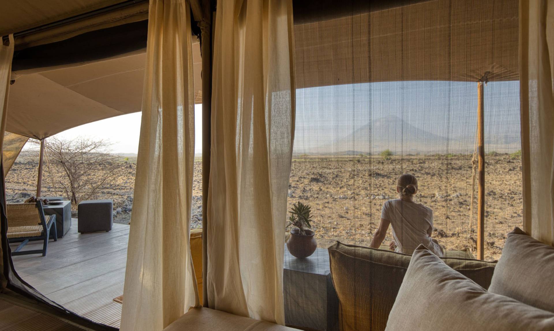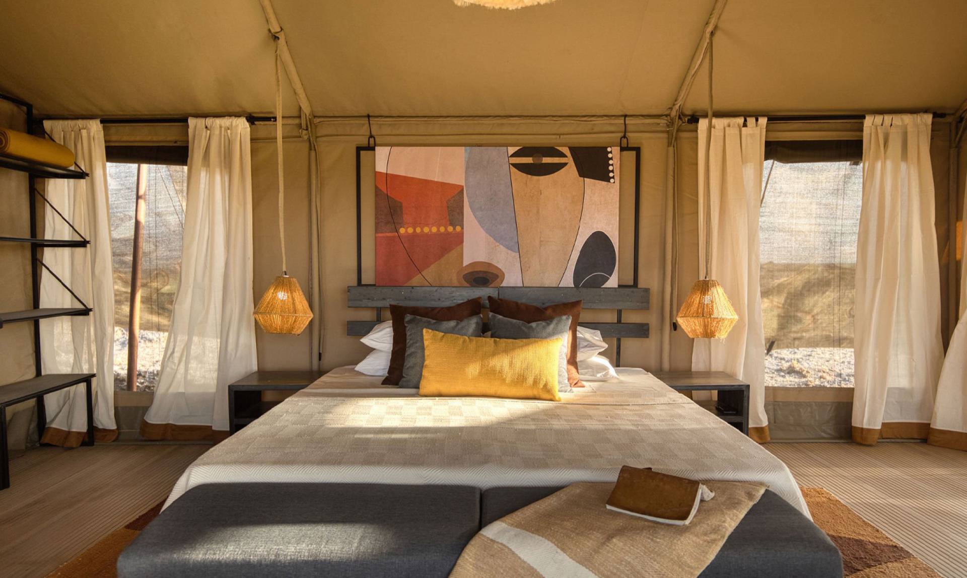 Lake Natron Camp è un campo ecologico unico nel suo genere, situato in uno dei luoghi più spettacolari del mondo: il Lago Natron. Il suggestivo paesaggio, sede dei Maasai e di un’abbondante fauna selvatica, è il santuario di milioni di fenicotteri. Il campo dispone di dieci lussuose e spaziose tende. Ogni tenda è composta da un portico, una camera da letto principale con comodo letto king size e un bagno privato con doccia e wc. Un sentiero privato conduce da ogni tenda alla piscina naturale alimentata dalle numerose sorgenti d’acqua.