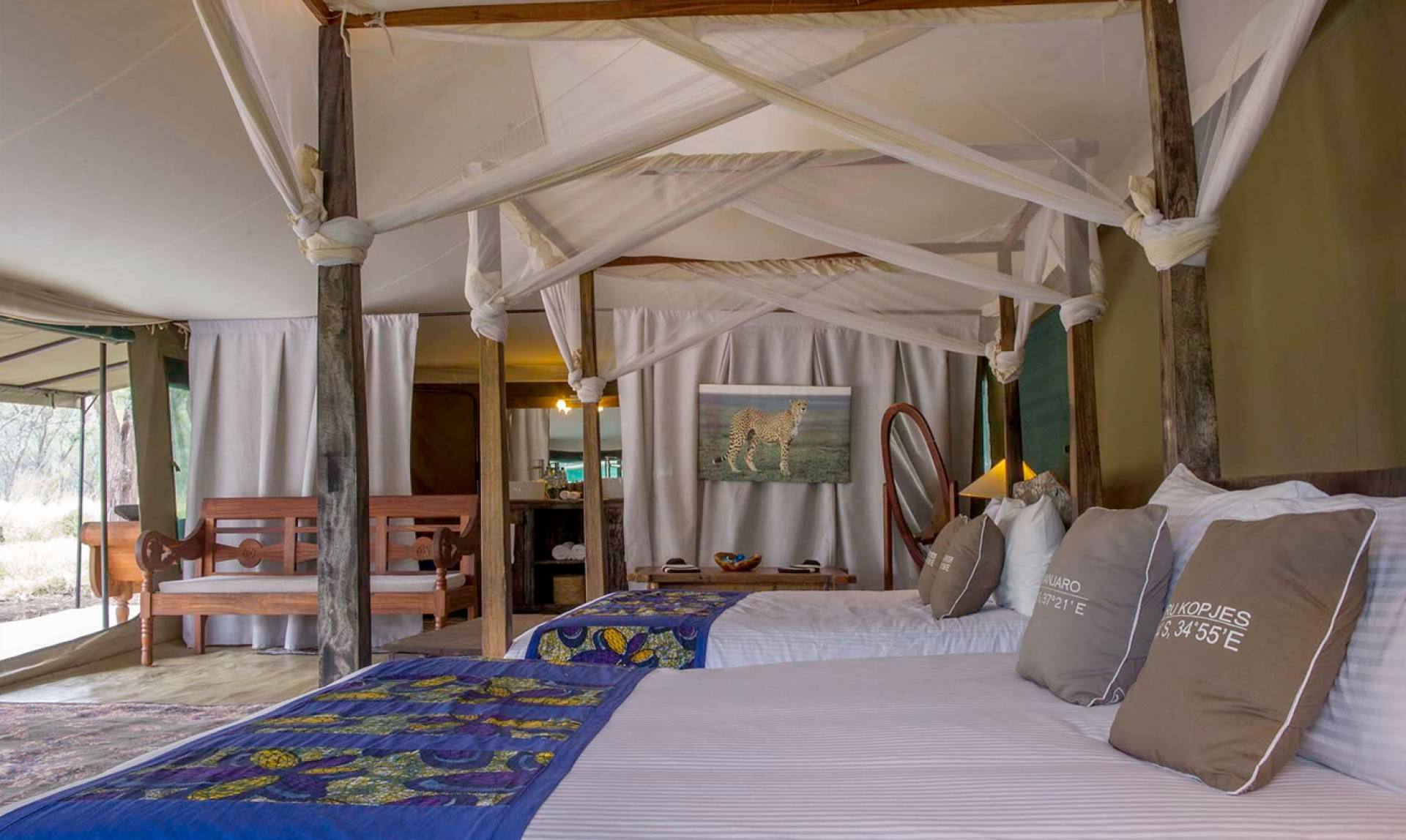 Naona Moru Camp è un elegante campo tendato situato in posizione elevata, vicino al famoso Moru Kopjes. Questa zona permette un’eccezionale osservazione della fauna selvatica tutto l’anno. Il paesaggio spazia dalle grandi pianure meridionali del Serengeti al fulcro centrale del parco nazionale più famoso dell’Africa, vicino alla pista di atterraggio di Seronera. Questo intimo campo è composto da dieci suite tendate ed offre un servizio eccellente. Ogni tenda dispone di letto a baldacchino, confortevole area salotto e spazioso bagno. Le suite sono adatte a sposi in luna di miele con cene private nel bush, a un piccolo gruppo di amici e persino a famiglie, con ampie tende in cui è possibile sistemare i letti per due adulti e fino a tre bambini.