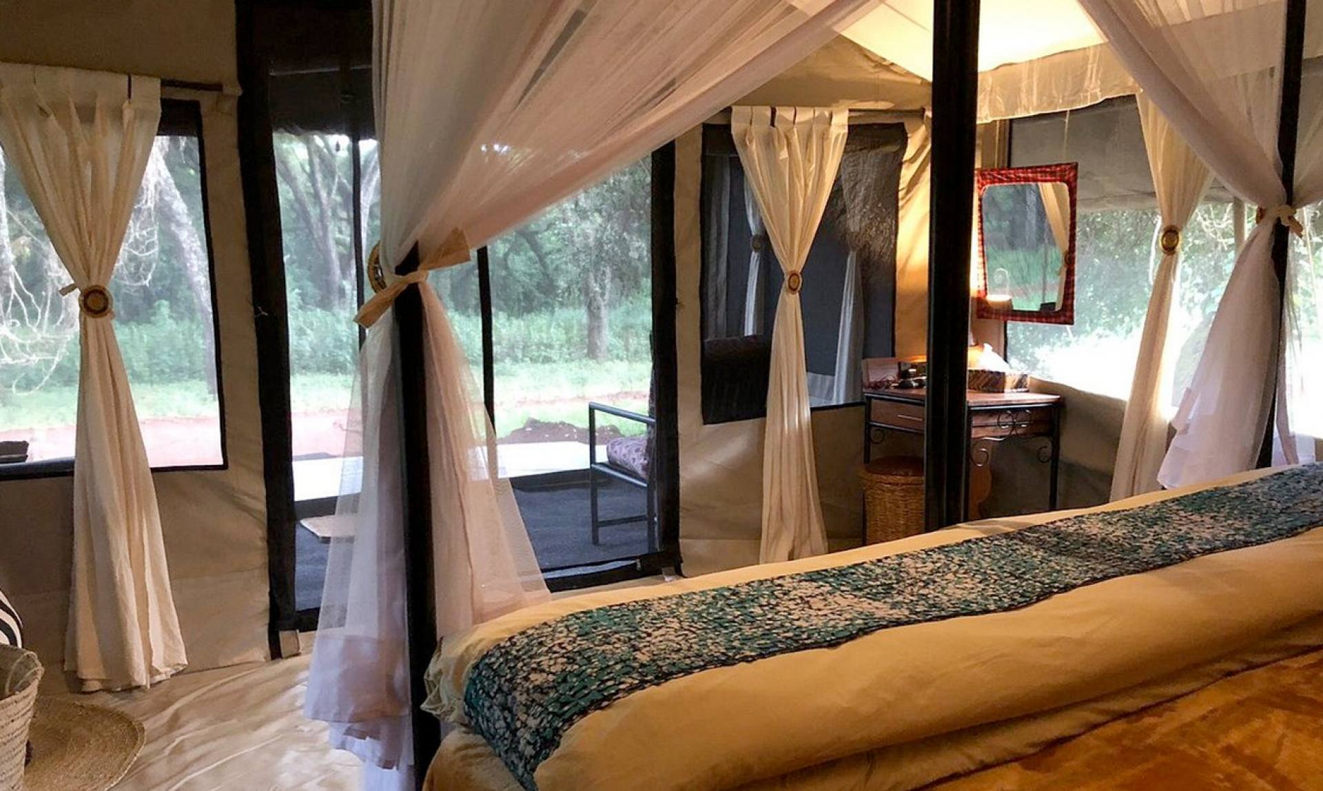 Ngorongoro Tortilis Camp è un appartato campo tendato incastonato in una foresta di alberi di acacia nell’Area di Conservazione di Ngorongoro, a tredici chilometri di distanza dal bordo del cratere. Il campo dispone di dieci spaziose tende nascoste nella magica cornice della foresta e dotate di tutti i comfort. Gli ospiti possono rilassarsi nella lounge o rinfrescarsi con un drink al bar, mentre la zona pranzo centrale offre un’ampia selezione di piatti locali.