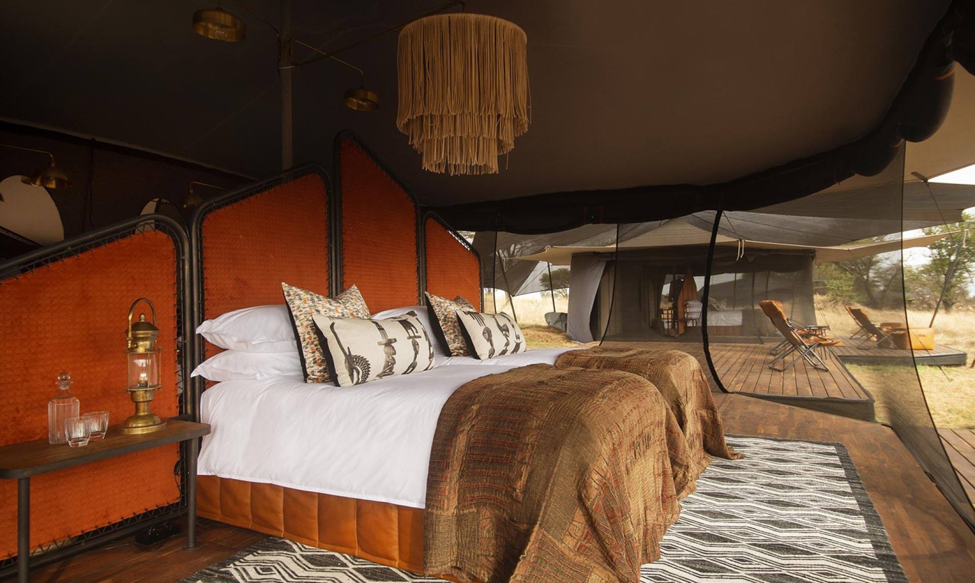 Siringit Migration Camp si muove in simbiosi con la natura, migrando con le mandrie dalle spettacolari traversate del fiume Mara nel nord del Serengeti alla stagione del parto nel sud del Serengeti. Il campo dispone di otto lussuose e spaziose tende di tela progettate per avvicinarsi alla natura circostante. Le tende in stile beduino sono posizionate su piattaforme rialzate per offrire una vista a 360 gradi delle pianure del Serengeti.