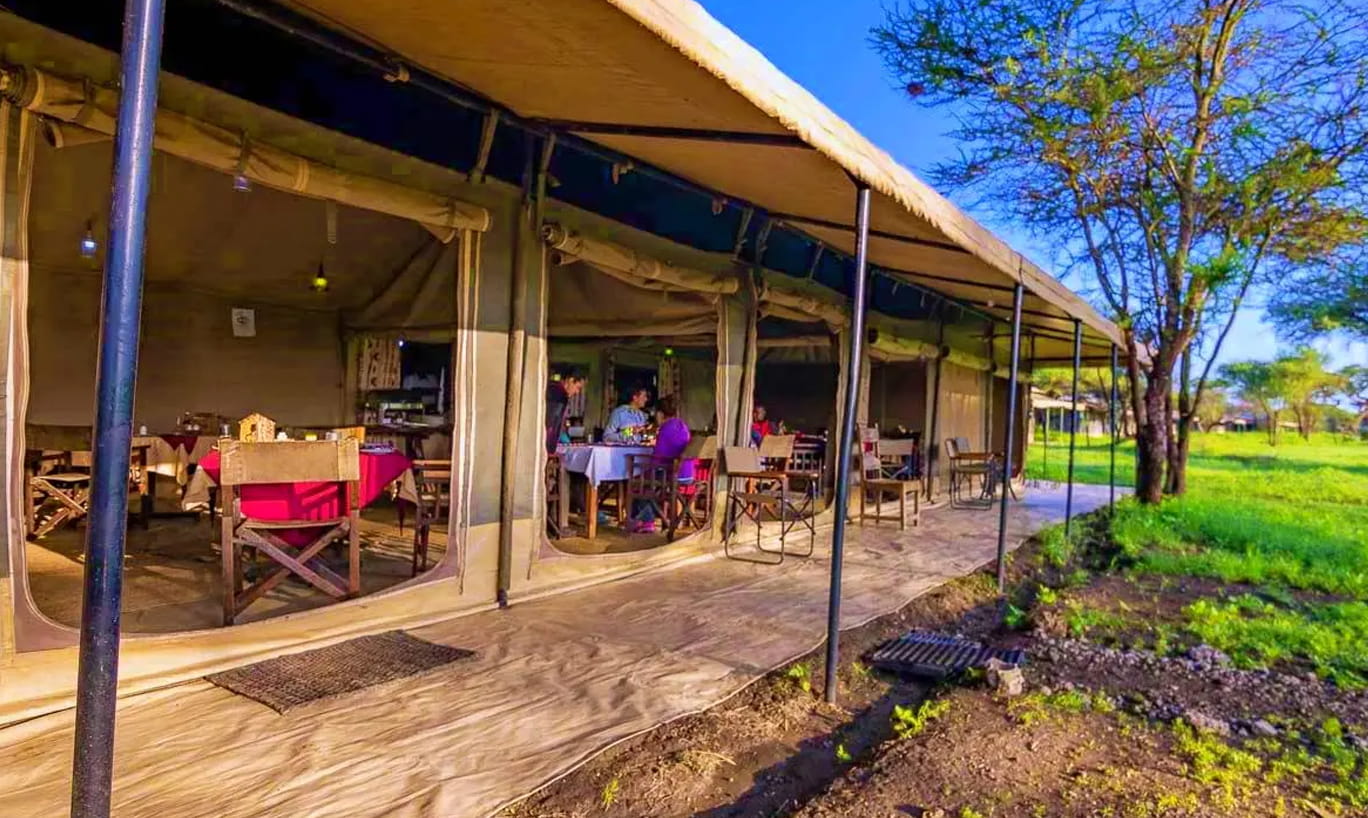 Tanzania Bush Ndutu Mobile Camp è un campo tendato stagionale situato da dicembre a marzo nella remota regione di Ndutu all’interno dell’Area di Conservazione di Ngorongoro. La sua posizione privilegiata offre l’opportunità di assistere alla Grande Migrazione degli gnu durante la stagione dei parti. Il campo è composto da dieci spaziose e confortevoli tende con bagno privato dotato di WC a sciacquone, doccia calda e lavandino. La tenda centrale comune comprende un salone arredato con comodi divani e sedie, un bar ben fornito e un ristorante che propone un mix di cucina continentale e locale.