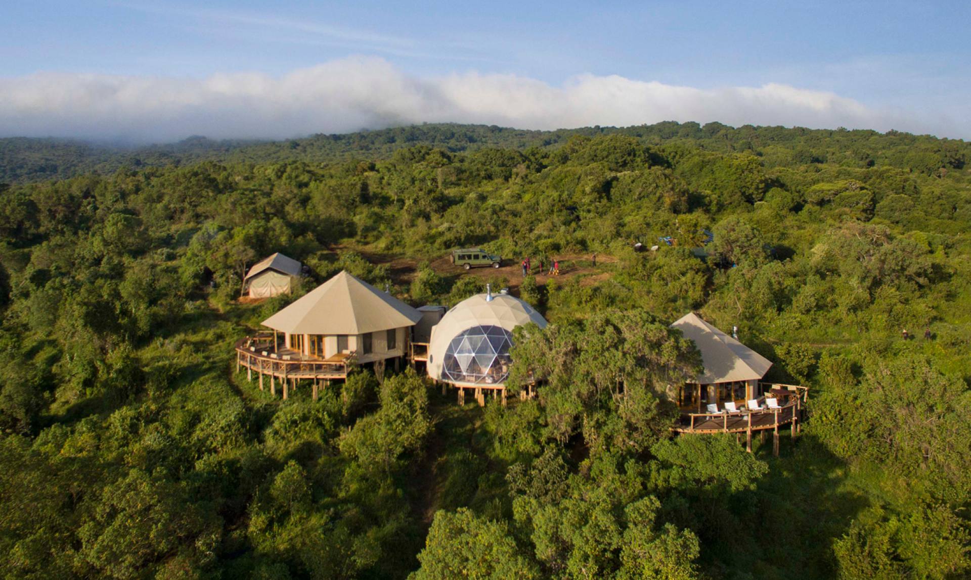The Highlands è un particolare campo situato ai margini della foresta montana che abbraccia il vulcano Olmoti, a nord del Cratere di Ngorongoro. La struttura offre un rifugio ad alta quota confortevole ed elegante in tende a forma di cupola, la cui forma è stata ispirata dai boma Maasai che punteggiano gli altopiani circostanti. Le otto grandi tende sono dotate di bagno privato con acqua calda corrente, doccia e servizi igienici con sciacquone. Letti accoglienti e una stufa a legna riscaldano gli ospiti anche nelle notti più fredde. Questo pluripremiato campo offre un’esperienza unica, grazie alla posizione esclusiva e ad una combinazione di comfort e stile contemporaneo.